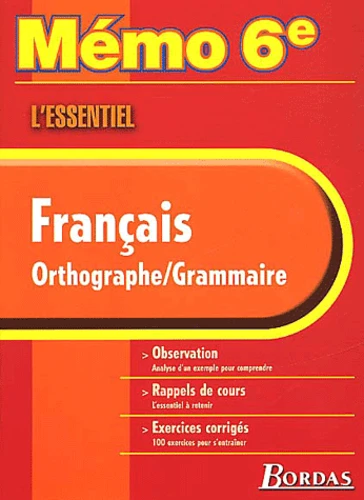 Francais Orthographe-Grammaire 6eme. L'Essentiel