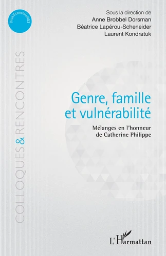 Catherine Philippe a consacré la majorité de sa carrière de chercheuse à l'étude du genre, de la famille et de la vulnérabilité. Au travers de ces mélanges, ses collègues, amis et collaborateurs ont souhaité lui rendre hommage et offrir leur regard sur ces trois thématiques. Les contributions ici réunies témoignent de la richesse des réflexions suscitées par ces thématiques.
