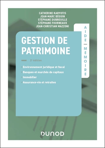 Comment les réglementations juridiques et fiscales impactent-elles la gestion de portefeuille ? Quelles sont les exigences relatives à la création de produits bancaires et de placements ? Quels défis les professionnels de la finance rencontrent-ils dans la gestion des systèmes de retraite ? Cet aide-mémoire permet d'appréhender de façon concise et accessible la gestion de patrimoine en offrant des clés de compréhension et d'analyse aux lecteurs. Cette deuxième édition, revue et à jour des dernières évolutions, explore les nouveaux enjeux de la gestion de patrimoine. Elle propose une analyse approfondie de l'environnement juridique et fiscal, des stratégies bancaires et des marchés financiers, ainsi qu'un éclairage sur les investissements alternatifs et la planification de la retraite.