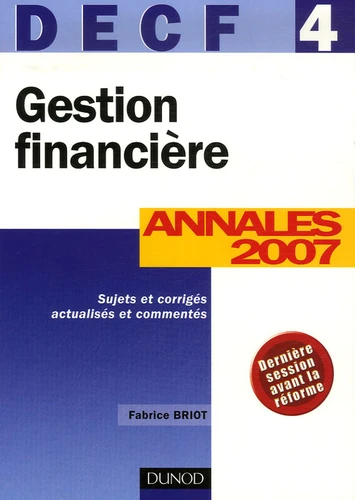 Totalement conformes aux programmes officiels, ces Annales actualisées et corrigées constituent une préparation efficace aux examens du DECF de la session 2007. Cet ouvrage vous permet de réviser l'épreuve n°4 du DECF " Gestion financière " dans les meilleures conditions. L'auteur propose en effet pour chacun des sujets : un tableau destiné à situer le sujet dans le programme (thèmes abordés, barème et durée de chaque question, niveau de difficulté, renvois précis au manuel de référence publié dans la collection " Expert Sup ", chez Dunod) ; une présentation des spécificités du sujet (son esprit, la stratégie à adopter pour résoudre le cas, son utilisation lors des révisions) ; un énoncé actualisé et conforme au programme officiel ; un corrigé commenté (recommandations, points de méthode, remarques) permettant d'évaluer votre performance grâce à un barème et des commentaires très précis.