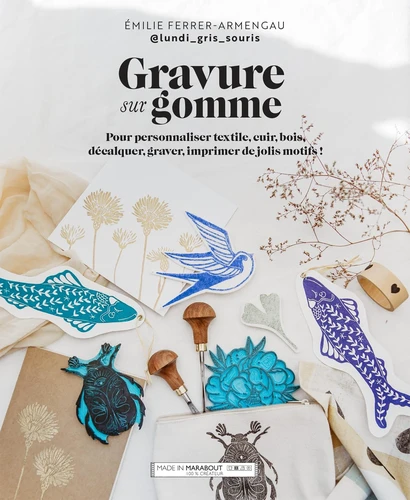 Gravez, encrez, imprimez... et customisez tout ce que vous voulez ! Apprenez à creuser les blocs de gomme pour réaliser l'un de ces 20 projets de tampon fait-main. Fleur, feuillage, animaux, cours ou abécédaire... ces motifs graphiques se transfèrent sur tout support textile, bois ou papier, pour orner votre déco ou une jolie trousse, un totebag, un coussin ou encore un beau marque-page. Découvrez les possibilités infinies de la gravure sur gomme grâce à ces tutos accessibles à tous, puis lancez-vous dans vos propres créations.