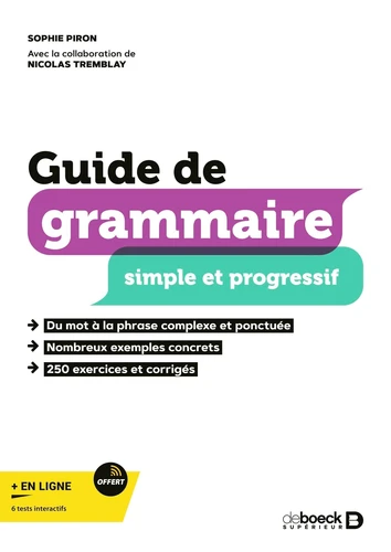 Un manuel de grammaire pour réussir l'épreuve uniforme de français Un manuel de grammaire, d'orthographe et syntaxe pour préparer l'étudiant en CEGEP à l'épreuve uniforme de français, organisé en six grandes parties, - les classes de mots - les groupes de mots - la phrase - la phrase complexe - l'analyse syntaxique et la norme - l'orthographe et la ponctuation Toutes les règles nécessaires, avec exemples concrets et explications claires, pour permettre à l'étudiant de réviser simplement et d'écrire un texte clair et sans fautes.