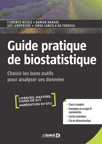 Ce guide pratique est destiné aux étudiants ou praticiens qui utilisent les statistiques dans le cadre de leurs projets ou de leurs travaux personnels de biologie et d'écologie. La statistique est en effet au coeur de ces disciplines, car elle permet de tester formellement des hypothèses de travail et constitue un passage obligé de l'observation et de la description à la formulation mathématique et au traitement des données. En dix chapitres, il couvre un ensemble de méthodes et de tests couramment utilisés et insiste sur les points cruciaux d'une démarche scientifique au service des questions de biologie et d'écologie. Un arbre de décision est proposé pour effectuer les bons choix de tests. Les auteurs proposent également de nombreux exemples tirés de la littérature scientifique, de leurs travaux en écologie végétale, écologie du sol et écologie forestière. Des scripts permettant de les réaliser sous le logiciel R sont également insérés tout au long du guide.