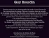 Jamais avant lui un photographe de mode n'avait bousculé les conventions du genre. Dès son irruption dans le monde de la presse illustrée, Guy Bourdin a su imposer un style et décrire un univers dans lequel les mannequins deviennent les acteurs glacés d'une sauvagerie urbaine qui n'enlève rien à la sophistication des situations. La femme n'y est pas sublimée mais Guy Bourdin lui donne une présence dans la séduction que l'insolite ne fait que rendre plus intense.