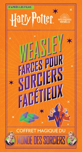 Pastilles de Gerbe, Leurres explosifs, Frisbees à dents de serpent, Boîtes à Flemme, Bombabouses, Boursouflets, philtres d'amour et cosmétiques Charme de Sorcière... Sitôt que Fred et George Weasley ent leur boutique de farces et attrapes sur le Chemin de Traverse, c'est la ruée sur leurs produits plus loufoques les uns que les autres. Grâce à ce coffret magique, les fans de la saga vont pouvoir retrouver toutes les incroyables inventions des jumeaux Weasley, collectionner des fac-similés étonnants et revivre les moments cultes des films tout en découvrant des secrets de tournage.