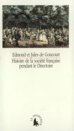 On se presse dans trente-deux théâtres, six-cent quarante-quatre bals publics, deux mille restaurants, une myriade enfin de cafés, de glaciers, de maisons de jeu et de promenades, lieux de toutes les aventures. Les Goncourt collectionnèrent le Directoire, au même titre que les tableaux et porcelaines dont ils s'entouraient : rassemblant dans les livres les plus obscurs, dans les pamphlets, les journaux, les feuilles, les affiches, une infinité de détails et de notations, de rites oubliés de tous ordres, restituant mieux que quiconque l'esprit d'une époque.