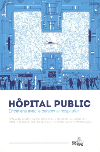Sur ce modèle (des auteurs rencontrant des salariés), il est question cette fois d'un sujet plus précis, l'hôpital, et plus généralement la santé aujourd'hui en France. Pour ce livre atypique, a été choisi comme "décor" le CHU de Nantes. Le but est de raconter des histoires autour du thème de l'hôpital. Ce livre est un recueil de reportages, chroniques contemporaines, rencontres dessinées. Lieu de passage obligé pour tous, l'hôpital ne se résume pas au triptyque malade/médecin/visiteur ; l'intérêt d'un thème comme celui-ci, c'est son énorme richesse humaine et son huis-clos spatial : un concentré d'humanité où s'y déroule une infinité de situations et d'histoires.