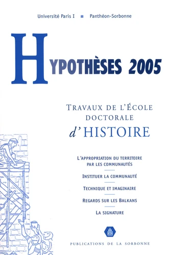 Pour sa neuvième livraison, Hypothèses 2005 rassemble les contributions de jeunes historiens appartenant aux différentes formations de l'École doctorale d'histoire de l'université Paris I