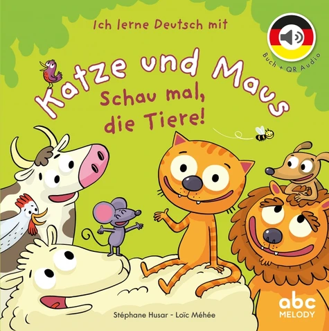 Lern Deutsch mit Katze und Maus ! Schau dir die lustigen Bilder an und hör die Dialoge. Wiederhol die Sätze und die neuen Wörter. Mit Katze und Maus wirst du lustige Tiere kennen. Wusstest du, dass eine deutsche Kuh "muh" macht ? Was meinst du, was sagen der Hahn, der Esel und der Löwe ...?