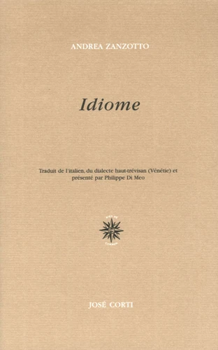 Dernier volet de la trilogie d'Andrea Zanzotto, Idiome entend rendre compte du mouvement destructeur et généalogique du langage à travers le chas, ou prisme, du bourg natal du poète suffisamment anonyme pour représenter tout lieu. C'est aussi le moment social de son œuvre riche en silhouettes, profils excentriques et autres décalcomanies subtiles, souvent dévolues au dialecte. Le poète restitue d'un côté l'immanquable mouvement d'usure des langues et langages d'erreurs grammaticales en usages privés, de déformations en corruptions diverses, de l'autre, de leur impétueuse germination entre idiomatismes, idioties et leur niveau moyen, l'idiome unanimement accepté. Cette conscience de la dynamique du langage, des "métabolismes erratiques du tout", appelle son apaisante suture. Pour ce faire, comme le François Villon de la Ballade des dames du temps jadis, le poète revisite les ubi sunt pour nous donner sa section centrale: Aller coudre où la biographie d'un moi se révèle inextricablement distillée par la "biographie" d'une petite communauté. Andrea Zanzotto met en évidence la Zauberkraft la force magique - celle du symbolique - évoquée par le philosophe Hegel. On assiste alors à la transformation du temps de la poésie en espace poétique nouveau, omnicompréhensif Une réversibilité du faux (les poncifs) en vrai (l'intensité de l'expression) peut finalement opérer. Le poète vise une poésie totale, il inclut alors dans ses poèmes des dessins, sigles, et autres icônes pour nous donner un recueil récapitulatif.