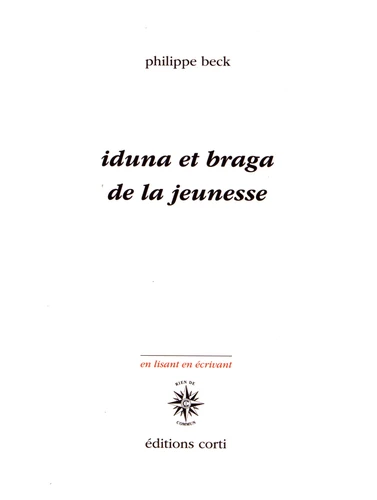 ""Iduna et Braga : De la jeunesse" est un essai ou, pour le dire plus exactement, une tentative de faire sentir au lecteur ce que peut être la jeunesse, non seulement en s'adressant aux jeunes comme ferait un philosophe-roi, mais bien dans la manière de décrire la jeunesse même, son intensité progressive et batailleuse à même chacun. C'est le pari du livre : d'être jeune dans les mots suivis qui reconstituent la force de la vivacité et de l'effort de l'existence qui s'interdit l'usure, le désabus, la complaisante fatigue dans l'inquiétude.