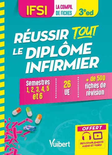 Découvrez dans cette compil + de 500 fiches pour réviser toutes les UE des 3 années d'études. Organisée par semestre, elle comprend : des fiches de cours synthétiques et illustrées ; des conseils de formateurs en IFSI pour comprendre les objectifs à atteindre ; des fiches audio pour mieux assimiler le cours et des vidéos des principaux gestes techniques à connaître. UE 1.1 Psychologie, sociologie, anthropologie ; UE 1.2 Santé publique et économie de la santé ; UE 1.3 Législation, éthique, déontologie ; UE 2.1 Biologie fondamentale ; UE 2.2 Cycles de la vie et grandes fonctions ; UE 2.3 Santé, maladie, handicap, accidents de la vie ; UE 2.4 Processus traumatiques ; UE 2.5 Processus inflammatoires ; UE 2.6 Processus psychopathologiques ; UE 2.7 Défaillances organiques et processus dégénératifs ; UE 2.8 Processus obstructifs ; UE 2.9 Processus tumoraux ; UE 2.10 Infectiologie, hygiène ; UE 2.11 Pharmacologie et thérapeutiques ; UE 3.1 Raisonnement et démarche clinique infirmière ; UE 3.2 Projet de soins infirmiers ; UE 3.4 Initiation à la démarche de recherche ; UE 4.1 Soins de confort et de bien-être ; UE 4.2 Soins relationnels ; UE 4.3 Soins d'urgence ; UE 4.4 Thérapeutiques et contribution au diagnostic médical ; UE 4.5 Soins infirmiers et gestion des risques ; UE 4.6 Soins éducatifs et préventifs ; UE 4.7 Soins palliatifs et de fin de vie ; UE 4.8 Qualité de soins, évaluation des pratiques ; UE 6.2 Anglais.