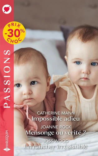 Impossible adieu - Mensonge ou vérité ? - Un rancher irrésistible Prix Choc Impossible adieu, Catherine Mann Naomi tient ses jumelles dans ses bras. Tout cela, elle le doit à Royce, qui l'a aidée à accoucher dans sa voiture alors qu'elle était bloquée au coeur d'une tempête. Royce, l'homme avec qui elle a vécu une passion dévastatrice quelques mois plus tôt. Un amour impossible, même si elle ne rêve que de l'avoir pour époux et père de ses filles. Mensonge ou vérité ? , Joanne Rock Comment Marcus ose-t-il lui reprocher sa proximité avec son frère, alors que cela a toujours été le cas dans leurs bureaux de Los Angeles ? Lili pensait qu'ils avaient un rapport de confiance - voire bien plus -, au point de se désengager de ses fiançailles... Il semblerait que Marcus se soit servi de son charme uniquement pour la manipuler... Un rancher irrésistible, Joss Wood Fee Martinez, star de téléréalité, fait une entrée fracassante dans la vie du rancher Clint Rockwell en emboutissant son pick-up. Alors qu'elle se trouve à Royal pour son émission, elle devient vite obnubilée par le mystérieux et indomptable cow-boy. Mais derrière son caractère volcanique se cache un douloureux secret, Fee en est certaine... Romans réédités