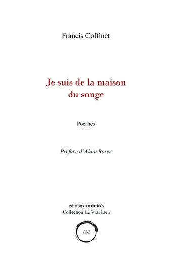 Je me suis embarqué à bord d'un voilier qui se glisse derrière ton oreille- J'ai cloué l'alphabet par les ailes et, avec le peu de gestes qui me restent, je te parle Je suis de la maison du songe est le quatrième recueil de la collection Le Vrai Lieu.