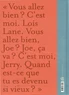 "Vous allez bien ? C'est moi. Lois Lane. Vous allez bien, Joe ? Joe, ça va ? C'est moi, Jerry. Quand est-ce que tu es devenu si vieux ? "