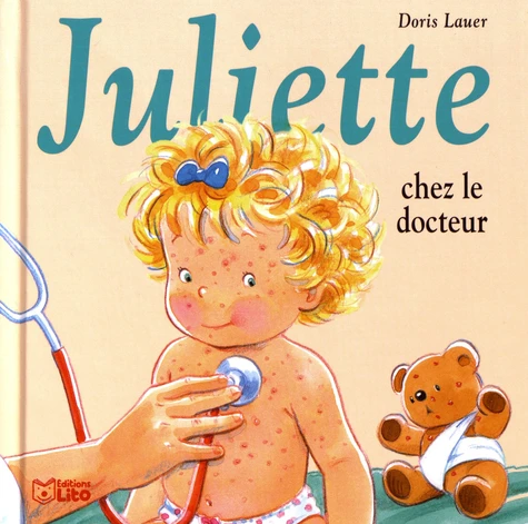 Dans Juliette chez le docteur, notre petite héroïne se réveille un matin avec de la fièvre et des boutons un peu partout... Sa maman appelle vite le docteur pour avoir un rendez-vous. "C'est la varicelle" confirme-t-il. Heureusement, Juliette a sa maman, son papa et son nounours pour lui remonter le moral et l'aider à ne pas trop... se gratter !