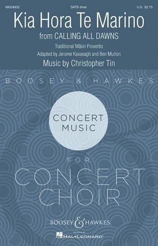 Christopher Tin's album Calling all dwans won two Grammys in 2009. The win marks the first time in history that a Grammy has been awarded to a composition written for a video game. Kia Hora Te Marino is based on a Maori provebr and thus contributes to the diverse concept of the album, featuring various languages and vocal traditions. Instrumentation : mixed choir (SATB divisi) and piano