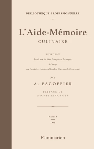 Un livre introuvable enfin réédité. 1846-2006 : il y a cent soixante ans naissait Auguste Escoffier, premier cuisinier à recevoir la Légion d'honneur, qui s'est éteint à quatre-vingt-huit ans en 1935, après avoir formé plus de deux mille chefs et fait briller la cuisine française dans le monde entier. Ses nombreux disciples forment une association internationale qui perpétue son héritage. Ils lui rendent hommage en permettant la réédition de cet Aide-Mémoire culinaire, préfacé par Michel Escoffier, son arrière-petit-fils.