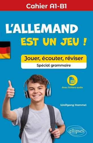Destiné à toute personne à la recherche d'un ouvrage permettant de réviser les bases de la grammaire allemande ou de rafraîchir ses connaissances de façon ludique, progressive et attrayante, ce cahier d'activités est pour vous ! Quel que soit votre niveau (A1, A2 ou B1), mots croisés, quiz, petits textes à compléter à l'aide de fichiers audio, mots mêlés,jeux de lettres, oui-non... seront vos compagnons de révision de près de 30 éléments de base de la grammaire allemande et du vocabulaire essentiel à connaître.
