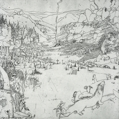 L'Almageste répond à un désir longtemps éprouvé par Frédéric Coché, celui de faire un récit de l'Apocalypse, le thème se prêtant à merveille à sa façon de télescoper des univers narratifs empruntés à des temps et des visions du monde différents. De l'idée d'une destruction inéluctable et expiatrice, des récits médiévaux de l'Apocalypse, des histoires de zombies et de ses propres interrogations sur la viabilité du monde que les hommes ont construit, Frédéric Coché ne fait qu'un dans L'Almageste, fresque gravée en eaux-fortes, lyrique et contemplative.