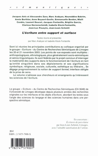 symbolique, religieuse, sociale, culturelle, esthétique ou littéraire... Se dégage progressivement la notion de support formel, interface obligée de la prise de sens. Le volume s'adresse aux chercheurs et enseignants qu'intéressent les sciences de l'écriture.