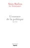 " Le séminaire "L'essence de la politique" appartient au cycle qui étudie les quatre procédures de vérité (science, art, amour, politique) dans leur être de condition de la philosophie. Le coeur de l'entreprise a cette fois été de démontrer un théorème spéculatif difficile, dont je donne, près de trente ans plus tard, une version synthétique : La politique est la pensée, ou la théorie, de ce qu'elle est, y compris si on l'entend comme "pratique", comme action transformatrice de l'humanité par elle-même.