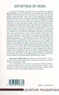 Les Cours d'esthétique de Hegel sont un monument de. réflexion philosophique sur l'art en général et sur les œuvres d'art particulières. Hegel s'est passionné pour l'art sous toutes ses formes, avec une très grande largeur de goût ; ainsi, dans les arts plastiques, il apprécie Raphaël et Michel-Ange, mais aussi la peinture flamande de paysages et les scènes de genre. La fonction de l'art est d'idéaliser la réalité empirique. L'art ne traitera donc pas seulement des sujets nobles, comme les aventures des dieux antiques, mais il montrera sa puissance d'idéalisation d'autant mieux que le sujet traité sera modeste et quotidien. Hegel est le premier à avoir compris la valeur du monde de l'art comme monde en soi dans sa théorie de l'Esprit absolu : c'est dans l'art que l'Esprit manifeste en premier lieu sa liberté et sa créativité. Il ne s'intéresse pas aux théories esthétiques (classicisme, romantisme), mais aux œuvres mêmes, et aux artistes créateurs. On trouve donc dans son esthétique ce qui manque en général aux philosophes, par exemple à Kant ou à Heidegger, une analyse philosophique des couvres particulières, et une synthèse de toutes les formes de l'art. Pour repenser aujourd'hui ce chefs-d'œuvre, on a fait appel aux meilleurs spécialistes allemands des cahiers manuscrits des élèves de Hegel, jamais publiés tels quels jusqu'à présent. On a repris la question de la mort de l'art, thèse sommairement attribuée à Hegel, alors que pour lui la vitalité de l'art est la première manifestation de l'immortalité de l'esprit. Devançant le vingt et unième siècle, Hegel a compris que l'esthétique n'est pas un discours philosophique sur le beau ni sur le jugement de goût ; rien ne peut remplacer la contemplation directe des œuvres, et la philosophie de l'art est l'analyse des œuvres singulières qui seule permet de justifier leur valeur.