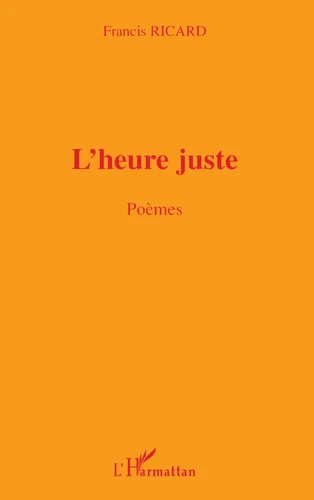 Où il est question de montres arrêtées, d'horloges qui sonnent à contretemps, de sabliers ensablés. Où il est question de l'urgence de l'amour et de la révolte que nul retard n'excuse. Où il est question de poésie au présent comme injonction vitale de ce temps détraqué. Une heure. ne serait-ce qu'une heure, une heure juste où se sentir justifié comme homme de bonne volonté, cette heure existe-t-elle pour le guetteur trop vigilant ? Face à la permanence d'un monde détraqué qu'il continue à dénoncer.