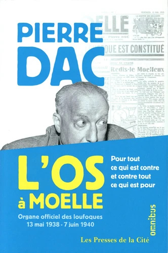 Nouvelle édition de l'anthologie des meilleurs textes parus de 1938 à 1940 dans L'Os à moelle à l'occasion de l'exposition "Du côté d'ailleurs" consacrée à Pierre Dac, au musée d'Art et d'Histoire du Judaïsme, à Paris. Voici l'anthologie des meilleurs textes parus de 1938 à 1940 dans L'Os à moelle . En 1938, Pierre Dac, dont l'humour loufoque est familier des auditeurs de la radio, fonde L'Os à moelle , l'organe officiel des loufoques, hebdomadaire satirique de 4 pages, qui connaît d'emblée un succès exceptionnel, faisant même de l'ombre au Canard enchaîné : avec 400 000 exemplaires, c'est un des plus forts tirages de la presse d'avant-guerre.