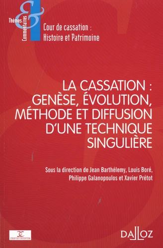 La technique de la cassation par ceux qui la pratique La cassation, invention française qui a inspiré nombre de systèmes étrangers, est une méthode de contrôle reposant sur une technique singulière. L'ouvrage, sous la direction du Comité d'histoire de la Cour de cassation, se donne pour ambition d'étudier cette technique à travers son histoire, sa genèse, ses évolutions, son développement, ses réorientations perceptibles sous l'influence des réformes constitutionnelles et des juridictions européennes.