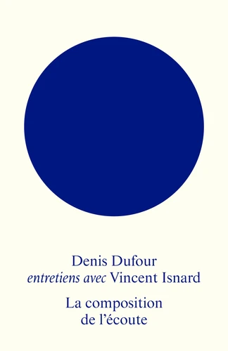 Ce livre d'entretiens se veut une introduction à la pensée musicale de Denis Dufour (né en 1953), une des plus importantes de notre temps. En première ligne de toutes les mutations musicales depuis 1976, dont il est un observateur clef, il en saisit comme nul autre les enjeux esthétiques. Formé auprès d'Ivo Malec (1925-2019) et Pierre Schaeffer (1910-1995), l'inventeur de la musique concrète, Denis Dufour grâce à cette double formation instrumentale et électroacoustique crée une oeuvre originale et exigeante.