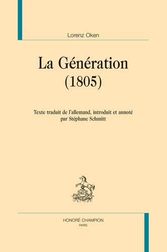Le naturaliste Lorenz Oken (1779-1851), l'un des principaux représentants de la Naturphilosophie, en applique les principes généraux, établis par Schelling, aux sciences de la nature. Dans La Génération (1805), ouvrage traduit ici pour la première fois, il s'intéresse au problème de la reproduction des êtres vivants et en propose une théorie entièrement nouvelle. Selon lui, la génération n'est autre qu'une agglomération de composés élémentaires du vivant, les "infusoires", qui s'assemblent lors du développement, puis se dissocient à la mort de l'individu, selon un cycle éternel.