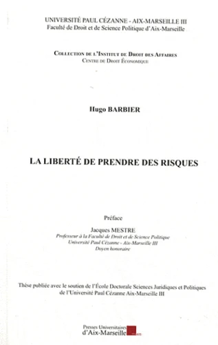 Nulle part pourtant, car la liberté de prendre des risques demeure non formulée en droit. Ni le législateur, ni les juges n'emploient l'expression, ni même la doctrine. Contenue jusqu'à présent silencieusement dans les libertés personnelle, contractuelle ou d'entreprendre, elle pourrait être appelée à sortir de l'ombre à la faveur de la concentration du débat juridique autour d'elle. C'est en tout cas le sens de cette étude : donner au droit la mission de tracer le régime juridique de cette liberté, ses fondements, frontières, sanctions et récompenses, afin d'inciter aux prises de risques nécessaires à l'ordre social et de dissuader de celles excessives.