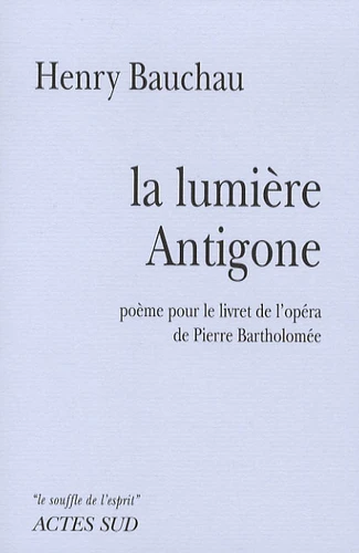 La Lumière Antigone est un livret composé par Henry Bauchau sous la forme d'un long poème. L'auteur entreprit ce travail à la demande du compositeur Pierre Bartholomée, avec qui il avait déjà collaboré à l'occasion de son précédent opéra, Oedipe sur la route. L'œuvre fut créée au Théâtre royal de la Monnaie à Bruxelles, en 2008. D'une beauté bouleversante, le livret-poème s'ouvre sur un monologue d'Antigone au moment où elle entre en solitude, dans la remémoration, l'interrogation. Henry Bauchau signe ici un texte d'une haute spiritualité où Antigone, guidée par la fatalité, ne cesse d'éclairer notre propre siècle.