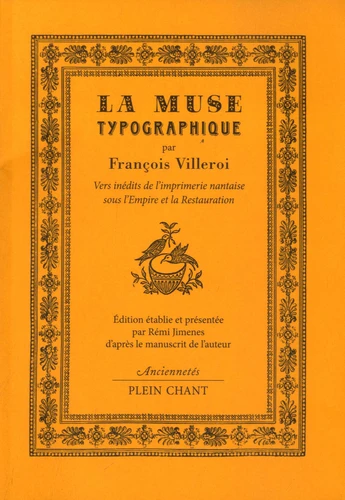 Les vers reproduits dans ce volume sont tirés d'un manuscrit resté inconnu jusqu'à une date récente. Intitulé La Muse typographique, il regroupe des textes rédigés tout au long de sa vie par un ouvrier typographe natif de Tours,. François Villeroi, qui fit carrière à Nantes dans deux importantes imprimeries, avant de mourir dans l'indigence en 1831. Il s'agit de poésies de circonstance : chansons de banquets, compliments adressés à des proches pour une fête ou un anniversaire, voeux de mariages, remerciements et hommages divers...