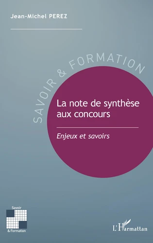 Le concours apparaît ainsi comme l'écosystème principal du développement de la note de synthèse. La première partie de l'ouvrage propose de la définir à trois niveaux : dans sa multiplicité avec plus de 143 notes, par rapport aux objets issus des formes modernes de la transmission des savoirs et enfin, par rapport aux épreuves de sélection plus classiques, comme le résumé de textes et La dissertation.