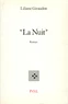 "La Nuit" désigne un lieu, bien sûr, sorte de petit music-hall interlope mais révèle aussi l'image d'une ville quadrillée par des personnels de surveillance, gardiens d'un état d'urgence. Cette histoire de l'impossible métamorphose, dont le héros est un travesti, met, sur la scène d'un port inventé, comme sur les frontispices des "classiques", quelques personnages fatalement perdus. Enfin, "La Nuit" inaugure peut-être un nouveau genre en littérature : le small polar...