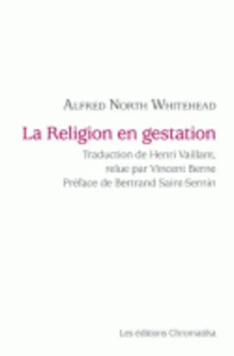 Le philosophe et algébriste britannique Alfred North Whitehead (1861-1947) est une figure marquante de la pensée du XXe siècle. Sa Religion en gestation (1926), héritière directe des Varieties of Religious Experience (1902) de W. James, reprend la question de la religiosité - c'est-à-dire de la religion vécue, pas de la religion en tant qu'institution - en l'articulant avec les exigences de la rationalité scientifique.
