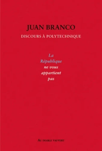 "La République ne vous appartient pas." Le 9 décembre 2019 Juan Branco ouvre par ces mots son discours dans l'amphithéâtre d'honneur de Polytechnique. Face aux étudiants de la plus prestigieuse école du pays, il se livre à une leçon magistrale sur le dévoiement du système qui vient de les consacrer et donne les clés pour comprendre les finalités d'un système éducatif où les écoles du soi(disant mérite sont créées pour reproduire une logique de domination au profit de quelques-uns.