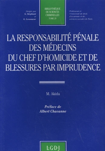 M. Akida, comme l'unanimité de la doctrine à l'heure actuelle, critique ce point de vue. La responsabilité pénale du médecin suppose une faute de celui-ci et une relation de cause à effet entre cette faute et le dommage. L'auteur examine avec soin ces deux points, analysant une jurisprudence qui conserve toute son autorité en dépit de la promulgation du nouveau code pénal. La faute peut être relevée dans l'exercice individuel de la médecine, aussi bien que dans son exercice au sein d'une équipe chirurgicale.