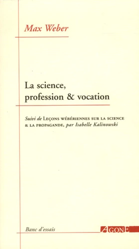 Ces interrogations nourrissent la conférence sur la science, où il livre une leçon de modestie et de " probité ", en un temps où se multipliaient, dans les universités, les petits " prophètes en chaire " et les démagogues des " valeurs ", davantage soucieux d'exploiter le ressentiment national de leurs étudiants que de leur enseigner le patient travail de la rupture avec les préjugés. Isabelle Kalinowski propose ici une nouvelle traduction de cette conférence, suivie d'un long essai, les Leçons wébériennes sur la science et la propagande, qui, enrichies de la traduction de nombreux extraits inédits, abordent cinq thèmes : la sociologie de la " vocation " savante, la théorie du " charisme ", le culte du poète-gourou Stefan George, le rapport entre " savant " et " politique " et, enfin, la soumission de l'université à l'organisation capitaliste du travail.