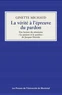 Prenant pour point de départ le séminaire inédit "Le parjure et le pardon" de Jacques Derrida, cet essai propose une lecture des trois séances qu'il a données à l'Ecole des hautes études en sciences sociales, à Paris, en 1998- 1999. Après avoir rappelé les principales apories du pardon élaborées par le philosophe, Ginette Michaud souligne les implications performatives de ce geste d'"offrande oblique" du point de vue du témoignage poétique auquel le pardon doit se mesurer, ainsi que l'importance des enjeux de traduction à l'endroit de l'idiome du pardon.