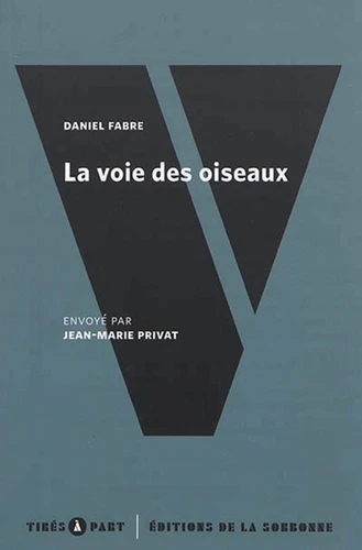 Tirés à part n. m. Extrait d'une revue ou d'un ouvrage relié à part en un petit livret. Destiné habituellement à faire connaître un article récemment publié, la collection détourne l'usage et la fonction du tiré à part pour inviter à la (re)découverte d'un texte. En lieu et place du traditionnel mot d'accompagnement de l'auteur, Jean-Marie Privât partage ici, dans une courte présentation, son expérience de lecture de : "La voie des oiseaux.