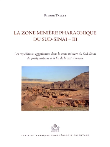 Ce troisième volume consacré à la zone minière du Sud-Sinaï a pour objectif l'étude des expéditions envoyées par l'Etat pharaonique vers la Péninsule, des origines de l'histoire égyptienne à la fin du Nouvel Empire, en utilisant l'ensemble de la documentation qui est actuellement à notre disposition. Celle-ci s'est largement renouvelée ces dernières années, à la fois grâce à des missions de prospection effectuées au Sinaï, et grâce à l'abondant matériel obtenu lors de la fouille des sites portuaires récemment identifiés sur la côte de la mer Rouge, à Ayn Soukhna et au ouadi el-Jarf, qui ont servi de points d'embarquement à certaines de ces expéditions.
