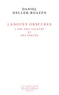 Ils ne le faisaient pas pour tromper mais pour révéler la langue des dieux, que les poètes et les prêtres étaient, disait-on, les seuls à maîtriser. Langues obscures évolue entre ces diverses langues artificielles et hermétiques. Des jargons criminels aux idiomes sacrés, du travail de Saussure sur les anagrammes à la théorie de Jakobson sur les structures subliminales en poésie, des arts mystérieux des druides et des copistes de la Bible à la procédure secrète que Tristan Tzara, fondateur de Dada, croyait avoir découverte dans les chansons et ballades de Villon.