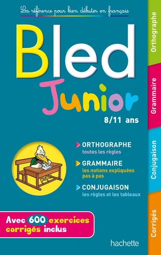 Le BLED Junior propose à votre enfant La révision des notions d'orthographe, de grammaire et de conjugaison nécessaires pour acquérir une bonne orthographe. Un outil de référence complet et pratique Chaque leçon est clairement structurée, avec : un exemple de la notion étudiée ; un rappel de la règle accompagné de conseils ; des exercices pour mieux comprendre et mémoriser la règle ; des mots à recopier et à retenir pour améliorer son orthographe.