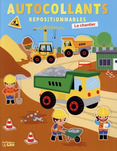 L'enfant découvre tout plein d'engins de construction en action sur différents chantiers ! Pour chaque scène, il retrouve sur sa planche d'autocollants les images indiquées, puis il les colle où il le souhaite sur la page, afin de compléter l'histoire !