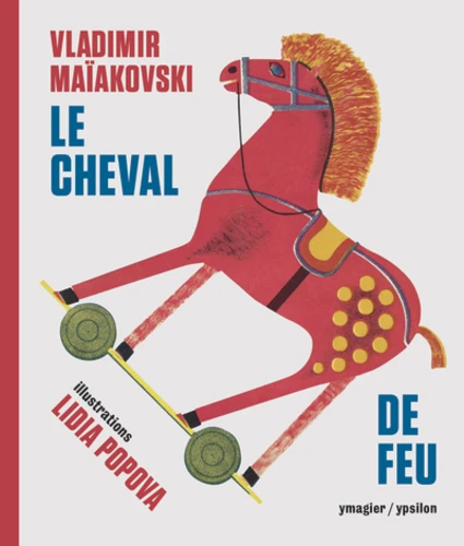 Il y a par exemple un menuisier, un peintre, un tapissier. Ainsi, l'enfant se familiarise avec la nature sociale du travail." Le Cheval de feu, superbement illustré et mis en page par Lidia Popova, fut publié en avril 1928. Imprimé en chromolithographie, son tirage était de 10 000 exemplaires et son prix de vente de 35 kopeks. Le Cheval de feu est le septième des neuf livres pour les enfants écrits par Maïakovski entre 1925 et 1929.