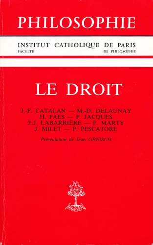 La question du droit met le philosophe en présence d'un secteur privilégié de l'activité humaine avec ses formes d'organisation institutionnelle, ses procédures, ses modes d'argumenter : une forme de vie qui, comme toute forme de vie, comporte ses jeux de langage spécifique. Pourtant les problèmes qui surgissent à partir de cette forme de vie n'ont rien de régional ; ils concernent le destin de l'homme en ce qu'il a de plus fondamental et, d'une certaine façon, la philosophie elle-même qui se découvre elle-même investie par la métaphore juridique dès lors qu'elle entreprend de définir sa propre rationalité.