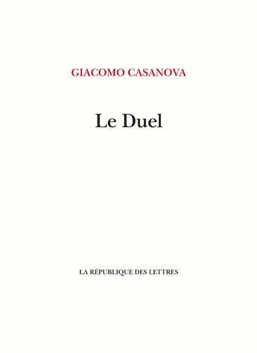 En 1766, Giacomo Casanova est à Varsovie. A la suite d'une aventure avec la danseuse vénitienne Anna Binetti, il est amené à se battre en duel avec le puissant comte Vladislav Branicki. L'affrontement, dans un parc désert, en pleine campagne polonaise, n'est pas entre deux hommes du même monde, mais entre deux mondes. Récit autobiographique, "Le Duel" ou "Essai sur la vie de J. C. Vénitien", publié par Casanova à Venise en 1780, relate méticuleusement les faits, à la troisième personne et dans le style unique qui assurera plus tard la gloire du mémorialiste. Le texte est suivi d'une brève autobiographie de Casanova.